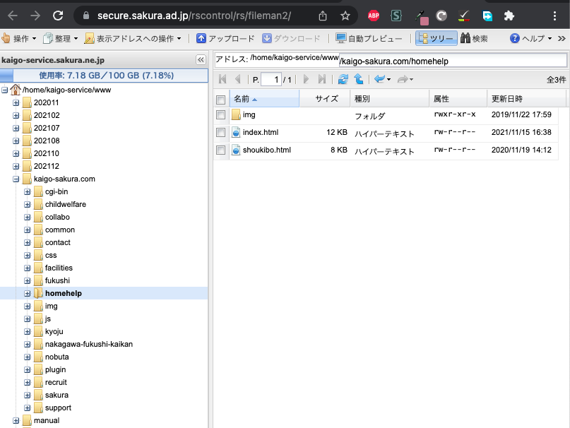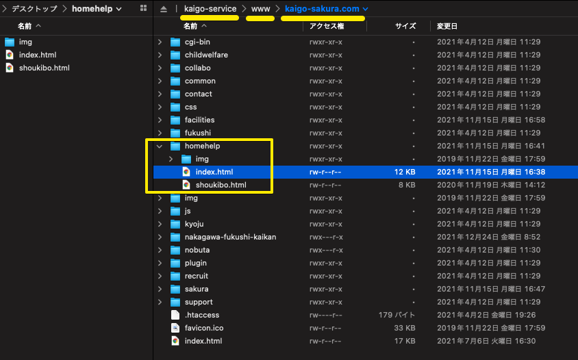 kaigo-service > www > kaigo-sakura.com フォルダの中に homehelp フォルダがあり、