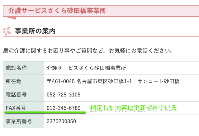 今回の例では、「 訪問介護 」ページの「 介護サービスさくら砂田橋事業所 」の情報を更新します。